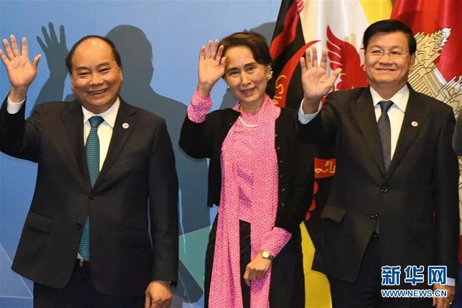 11月14日,越南总理阮春福(左)、缅甸国务资政昂山素季(中)和老挝总理通伦在新加坡出席第二次“区域全面经济伙伴关系协定”领导人会议。 新华社发(邓智炜 摄)
