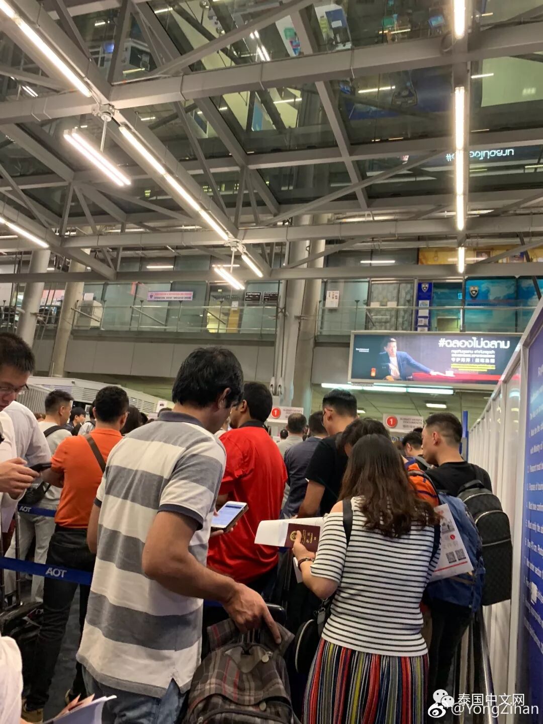 而在泰国素万那普国际机场和廊曼机场入境的中国游客和导游也证实了“游客暴涨”的说法,甚至不少游客吐槽道:“简直是人满为患啊,排队办落地签的整个过程竟然花了5、6个小时......