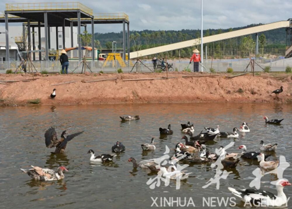 为实现废物再利用和减少排放,太阳纸业利用树皮、木屑和废液发电,电力不仅满足已完工的一期项目用电,还销售给老挝电力公司。同时,为了让附近百姓安心,工厂的废水排放口养着一群鸭和许多鱼。陈文俊说:“这么做就是为了让老方,尤其是让附近的村民放心。”