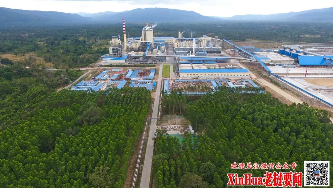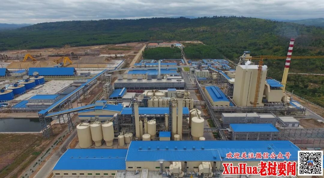 这是11月23日在老挝沙湾拿吉省车邦县拍摄的老挝首个现代化纸浆厂全景(航拍照片)。(刘艾伦 摄)