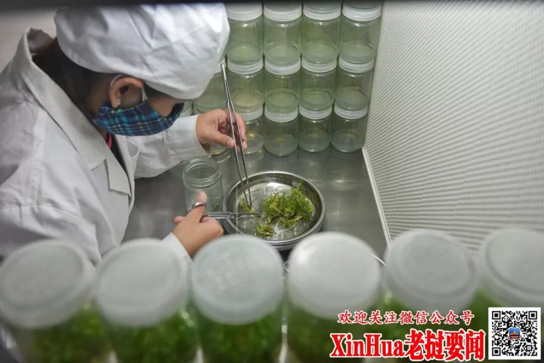 11月23日,在老挝沙湾拿吉省车邦县,当地工作人员进行桉树组织培养。 (刘艾伦 摄)