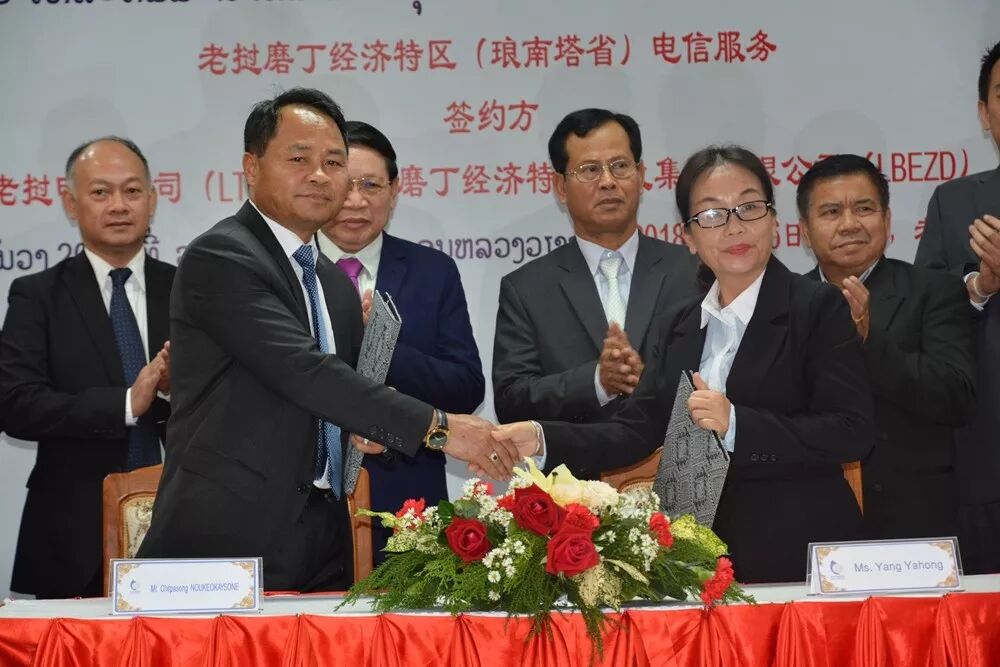 老挝LTC与老挝磨丁经济特区发展集团6日在老挝首都万象签署老挝琅南塔省磨丁经济特区电信服务合作合同,邮电部副部长通赛、公安部副部长彭迪空通出席并主持签署仪式。