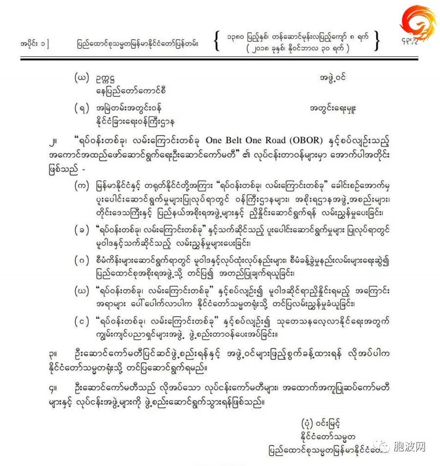 12月8日凌晨《胞波网》发布了《缅甸联邦政府发布“一带一路实施委员会”名单》后,该文广受热议并被转载...... 今天主编再阅文稿时发现了重大失误——原来昨天发布的文章少了一页。为了降低编辑失误造成的影响,《胞波网》赶译了第二页并在此将文章完整版全文刊发。