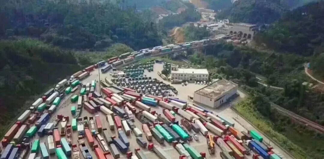 老挝磨丁口岸——中国磨憨口岸堵车场景