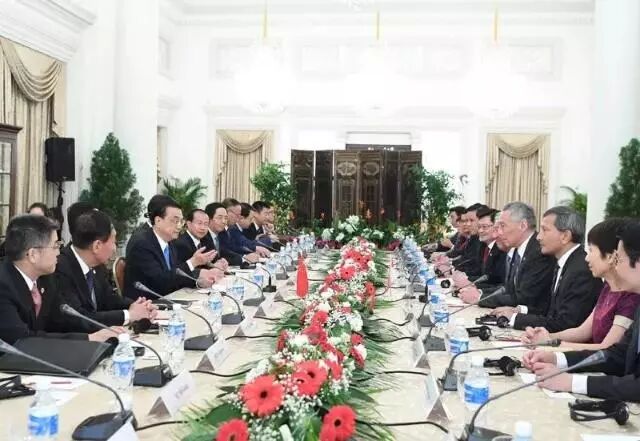 ▲2018年11月,国务院总理李克强与新加坡总理李显龙共同见证了中新(重庆)项目旗下“国际陆海贸易新通道"谅解备忘录的签署。图为两国领导人的会谈现场。(来源:中国政府网)