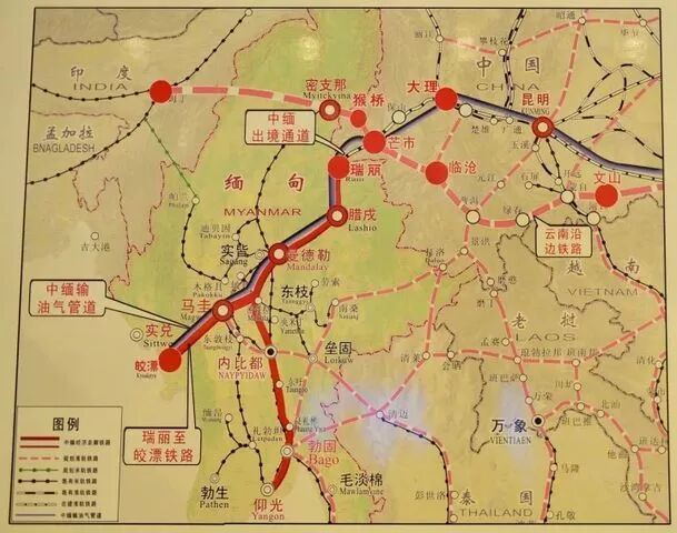 未来,中缅铁路缅甸段将经过曼德勒连接缅甸皎漂。中缅铁路一旦贯通将成为中国连接东南亚、南亚地区的国际大通道,中国铁路也将直接联通至印度洋。