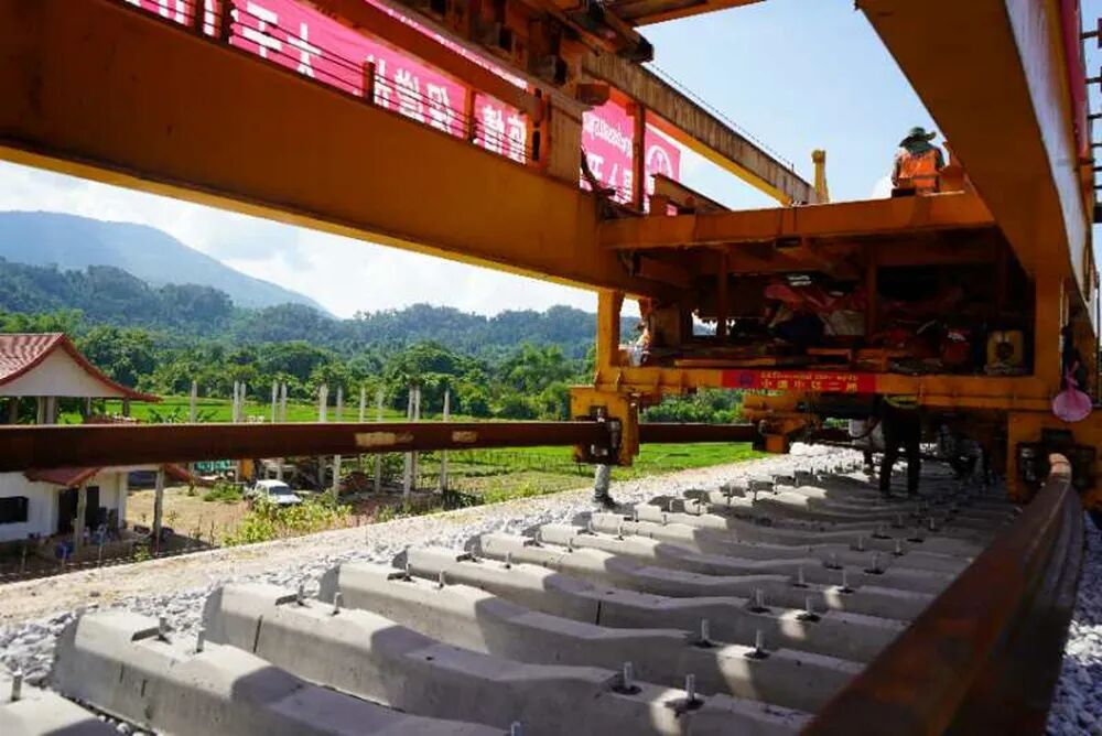中老铁路铺轨施工突破100公里大关,顺利抵达老挝万荣站