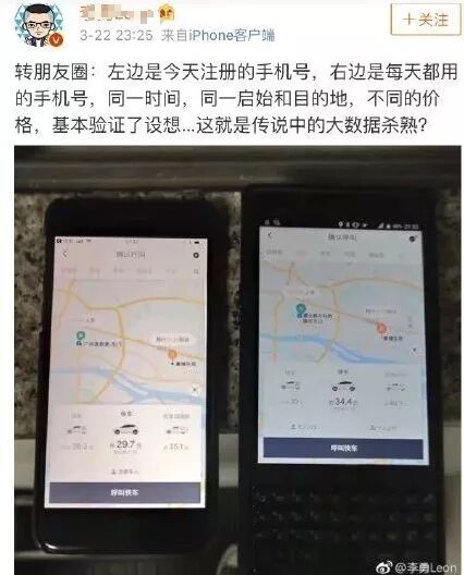 打同样的车,走同样的路,为什么我花的钱要比别人的多?近日,有网友发现,同一段路程,打车软件对两部手机的报价却不一样。