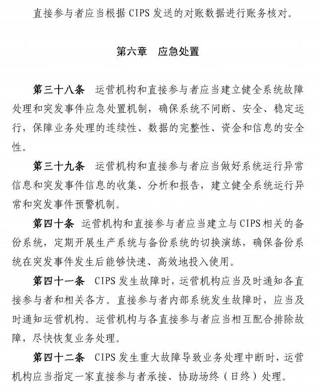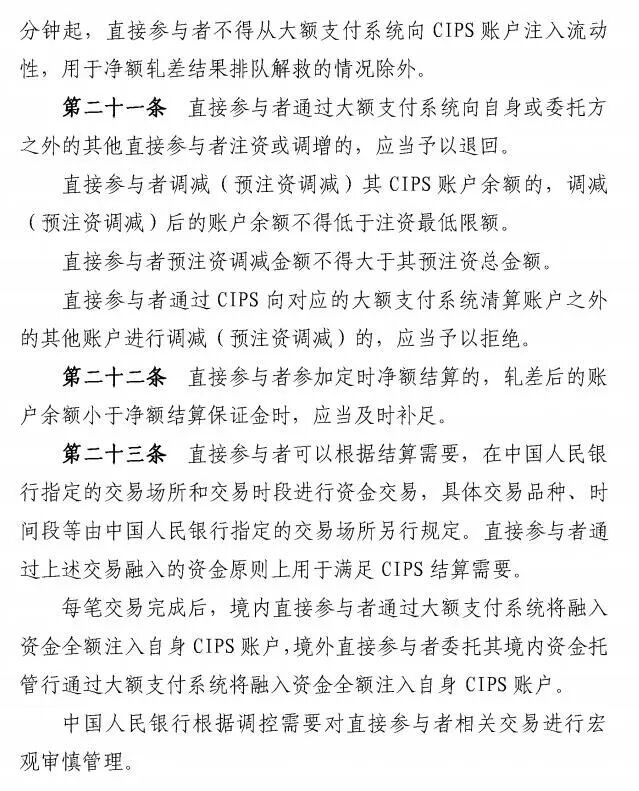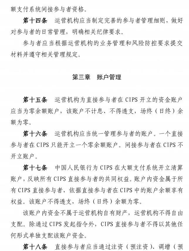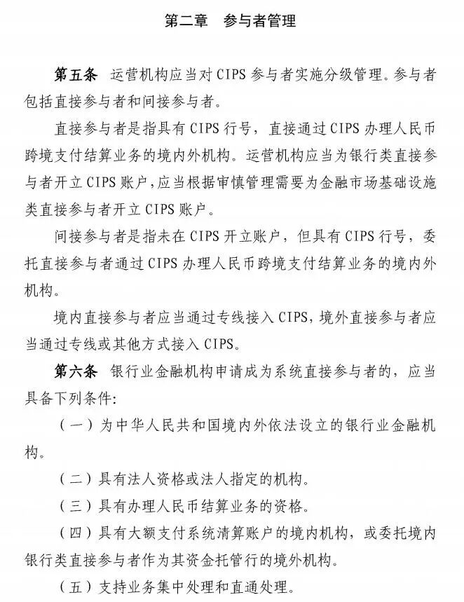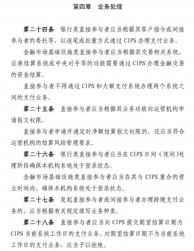 其中,《人民币跨境支付系统业务暂行规则》(银办发[2015]210号)由人民银行制定并在门户网站发布,主要规定参与者的加入条件、业务处理要求、账户管理要求等。经人民银行批复后,CIPS运营机构制定并发布了《人民币跨境支付系统参与者服务协议》和《人民币跨境支付系统业务操作指引》,协议以法律文本的形式约定了CIPS运营机构和参与者的权利与义务;操作指引规定了主要业务流程及具体要求。后续,CIPS运营机构还将发布《人民币跨境支付系统运行规则》(最新发布:银发[2018]72号)、《人民币跨境支付系统技术规范》。