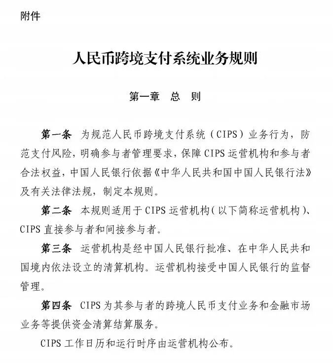 附文四: 《人民币跨境支付系统业务规则》银发[2018]72号