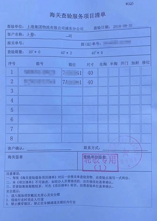 海关掏箱作业单