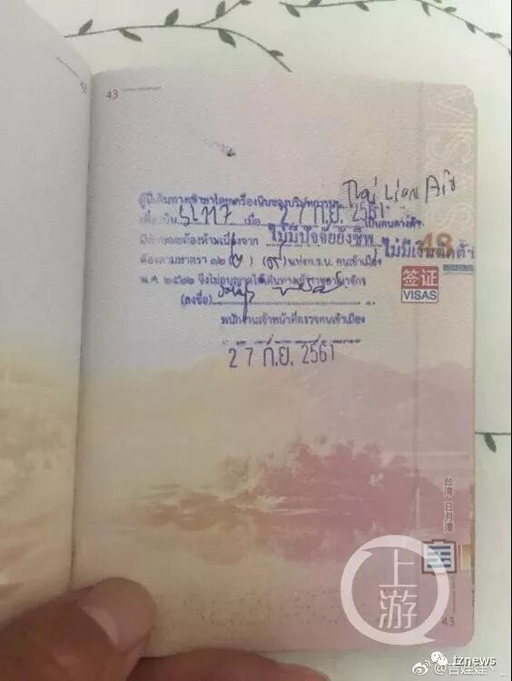 梅先生的护照被泰国方面拒签,泰方在护照上给出的拒签原因是没有随身携带必要的生活费用。