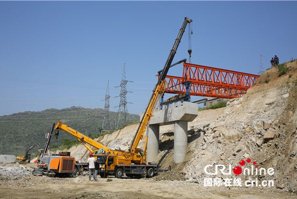 ▲喀喇昆仑公路二期K99处车行天桥的桥梁架设施工现场。(来源:国际在线)