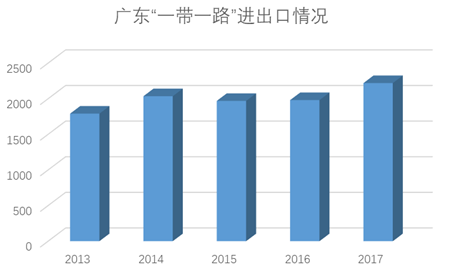 这份报告显示,2017年,广东与“一带一路”沿线国家进出口贸易额15036.9亿元人民币,同比增长14.9%,占全省进出口总额22.1%。与“海上丝绸之路”沿线重点14国进出口贸易额同比增长14.6%,高于全省8%的进出口增幅。广东在“一带一路”沿线国家设立境外企业(机构)118家,实际投资2.9亿美元。