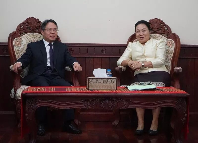 10月22日,姜再冬大使在老挝外交部会见老挝副外长坎葆。