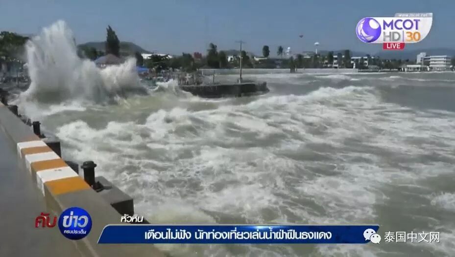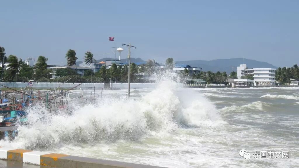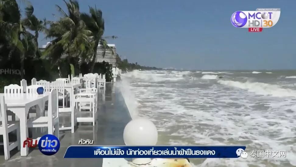 从10月31日开始,泰国华欣海域的海浪整天都高达2-3米,当地的小型船只都已经纷纷靠岸暂避风浪,海滩上的各种商铺也全部关门暂停营业。
