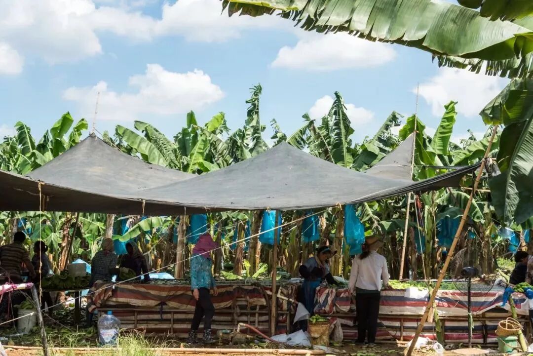 眼下正是香蕉采收高峰期,近日,在广西南宁武鸣区锣圩镇鑫盛丰香蕉基地,广大蕉农正在忙碌洗蕉、过称、筛选、打包装运,当天该基地又俏销16吨香蕉给山西客商。